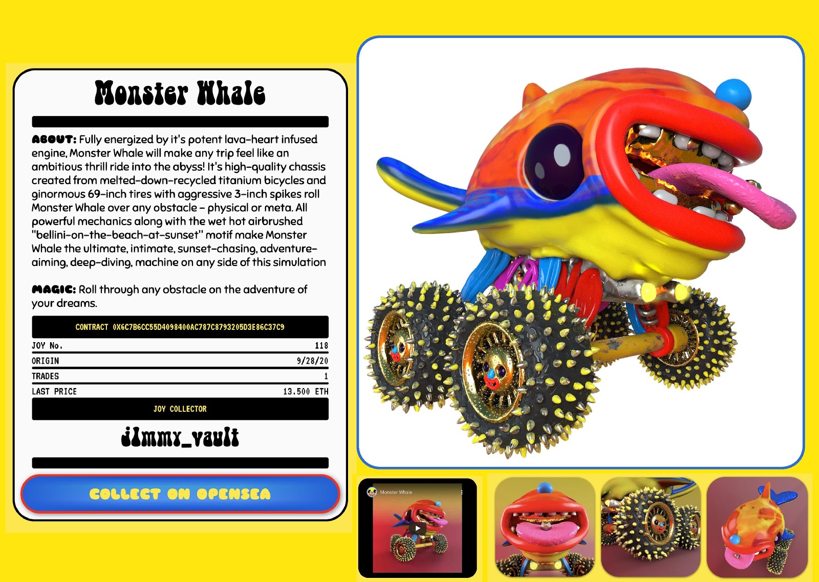 Each JOY from JOY World has its own ‘About’ page and unique magical power. A ‘Monster Whale’, for instance, has the ability to enable its owner ‘to roll through any obstacle on the adventure of their dreams’. Now, if Jimmy owns it, he can choose to just send it to a friend or list it for a higher or a lower price. This, in essence, is true ownership - and JOY collectors have taken these concepts forward in their own ways. One of the collectors who owns ‘Whale Shark’ has built his a coin on top of the JOY. So with his own money and all the other NFTs collected - he has accrued millions of dollars of NFTs and then built a currency. Another case in point is a person who took their JOY and shattered it into a million pieces, such that if you buy all those pieces, and collect them, only then can you put the JOY back together.