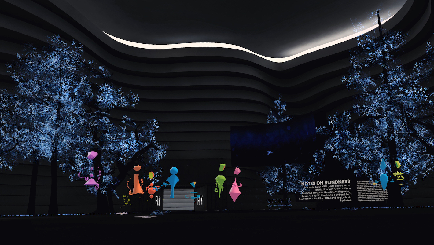 The idea for Notes on Blindness began as a podcast, with an interactive element. When the Novelab team began prototyping, they realized that they were lacking something because talking about blindness by using only sound for a sighted audience lacked this relationship between the senses. Using omnidirectional sound, the team wanted to translate into visuals an experience of space for sighted people - to truly experience what John Hill describes.